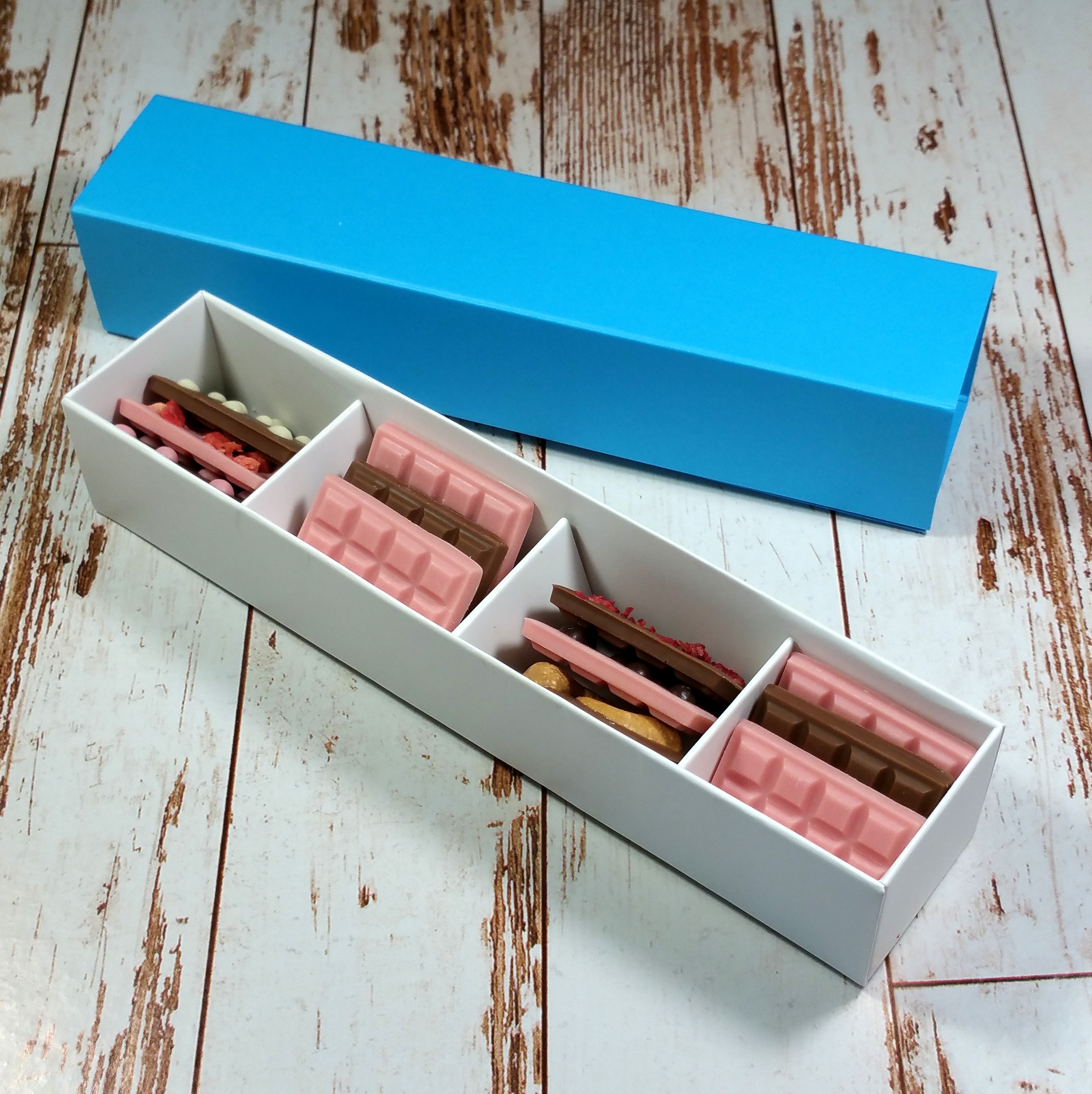 Шоколадки выполнены из лучшего бельгийского шоколада Barry Callebaut! Мини шоколадки делаем из молочного, белого, темного и клубничного шоколада! Также можем в одной коробке сделать микс шоколадов! Например: белый с клубничным, темный с молочным, или все четыре вида шоколада вместе!