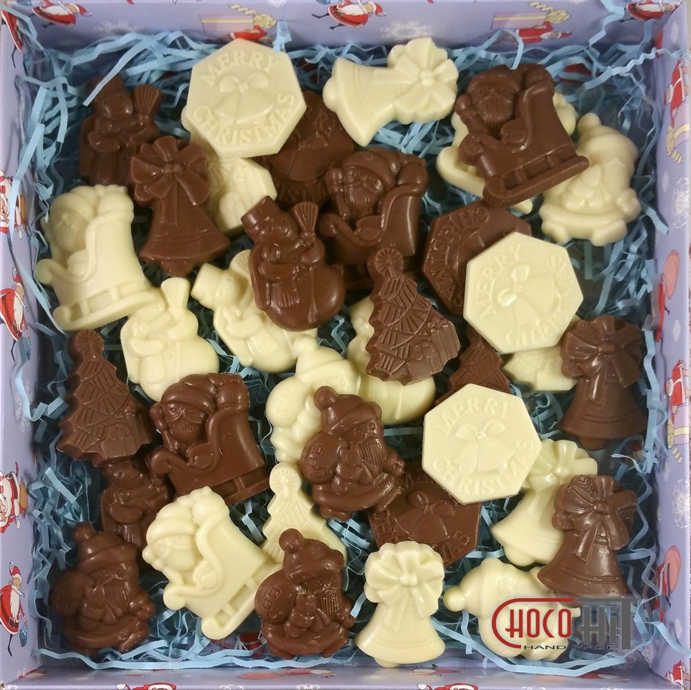 Набор фигурного шоколада "Новый Год 36 фигурок" 290гр (коробка 20х20см) 18 из молочного и 18 из белого шоколада