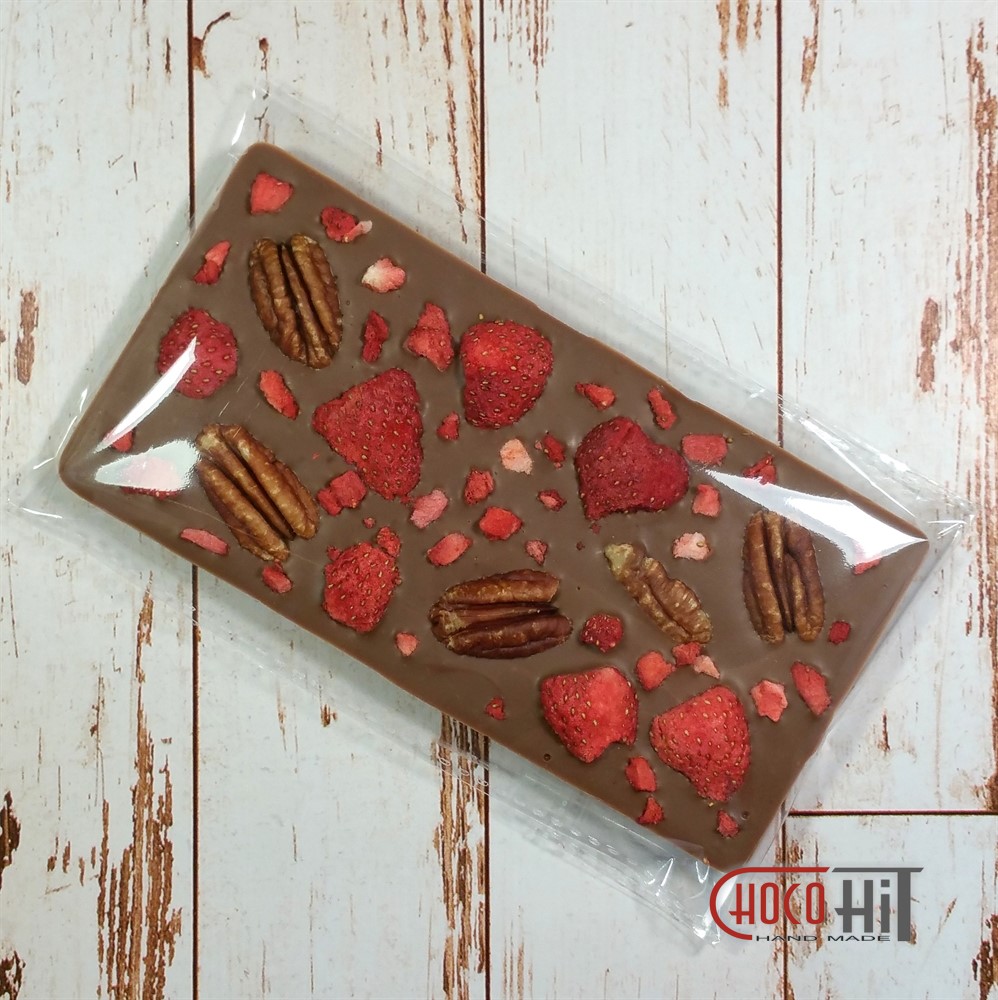 Плитка из МОЛОЧНОГО шоколада "Орех пекан и клубника" 100гр