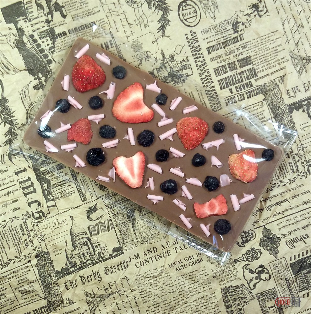Плитка Молочный шоколад "Клубника, черная смородина и стружка из клубничного шоколада" 100гр